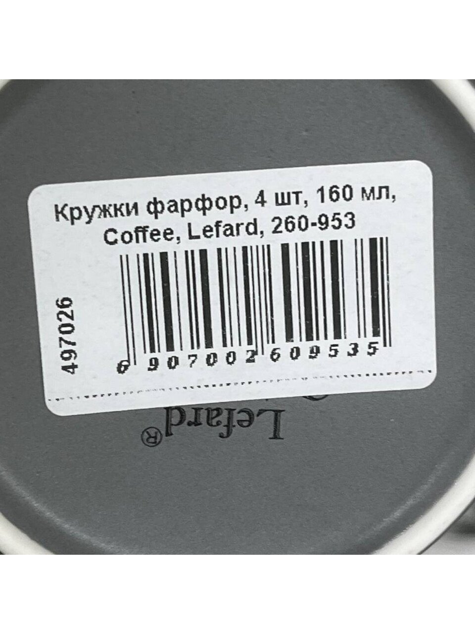 Набор фарфоровых кружек Lefard Coffee 160 мл (4 шт): стильный подарок для дома и офиса, идеальный размер для кофе и чая, выгодная цена