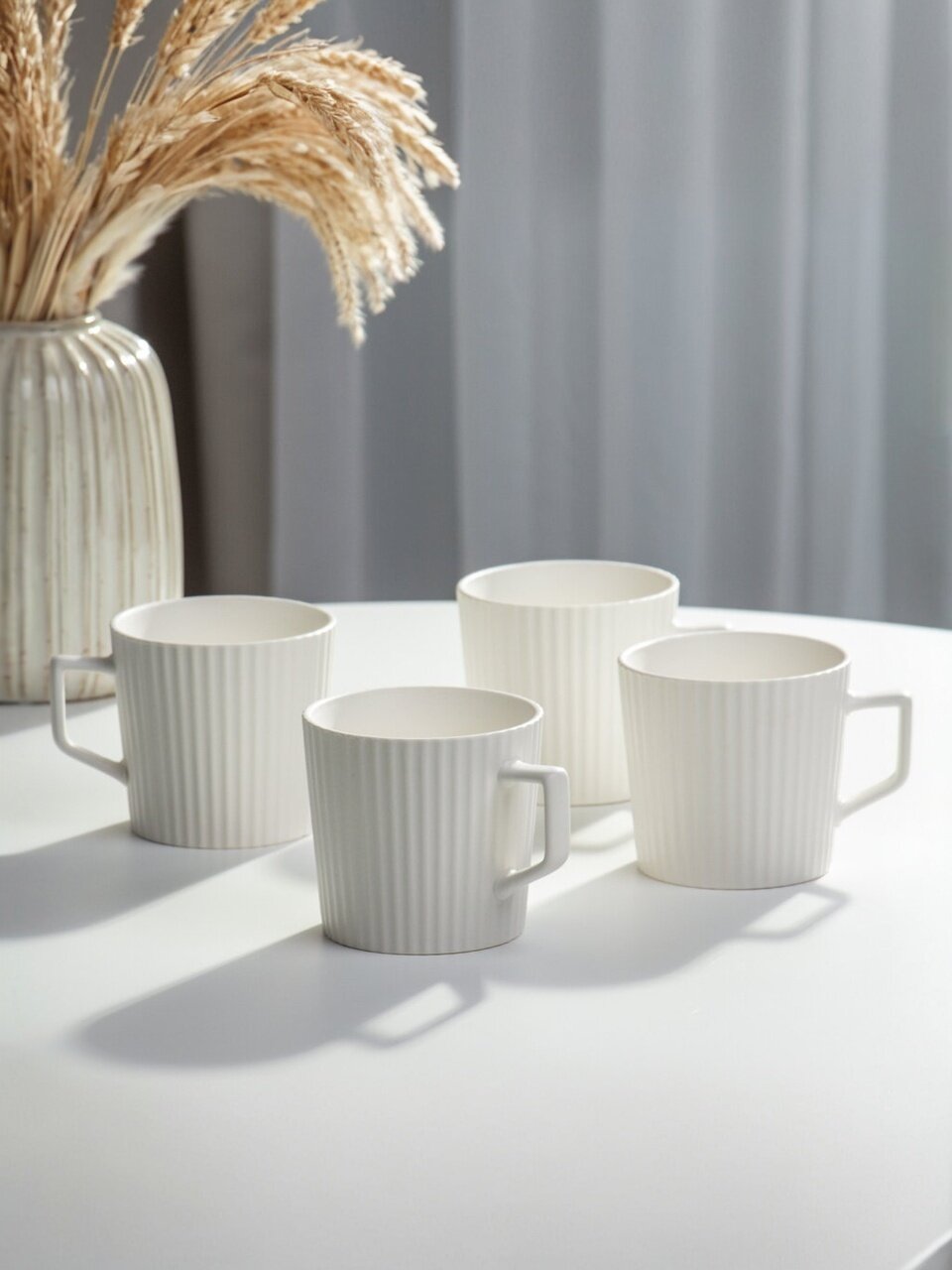 Набор керамических кружек Daniks Эльзас 350 мл (4 шт, белый): универсальное решение для дома, дачи и уютных чаепитий — подходит для СВЧ и посудомоечной машины.