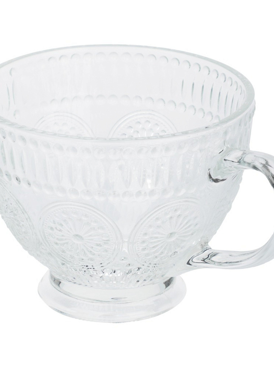Кружка выполнена из прозрачного стекла, объём — 420 мл, высота стандартная, без эмалированного покрытия, без крышки и дополнительных аксессуаров.