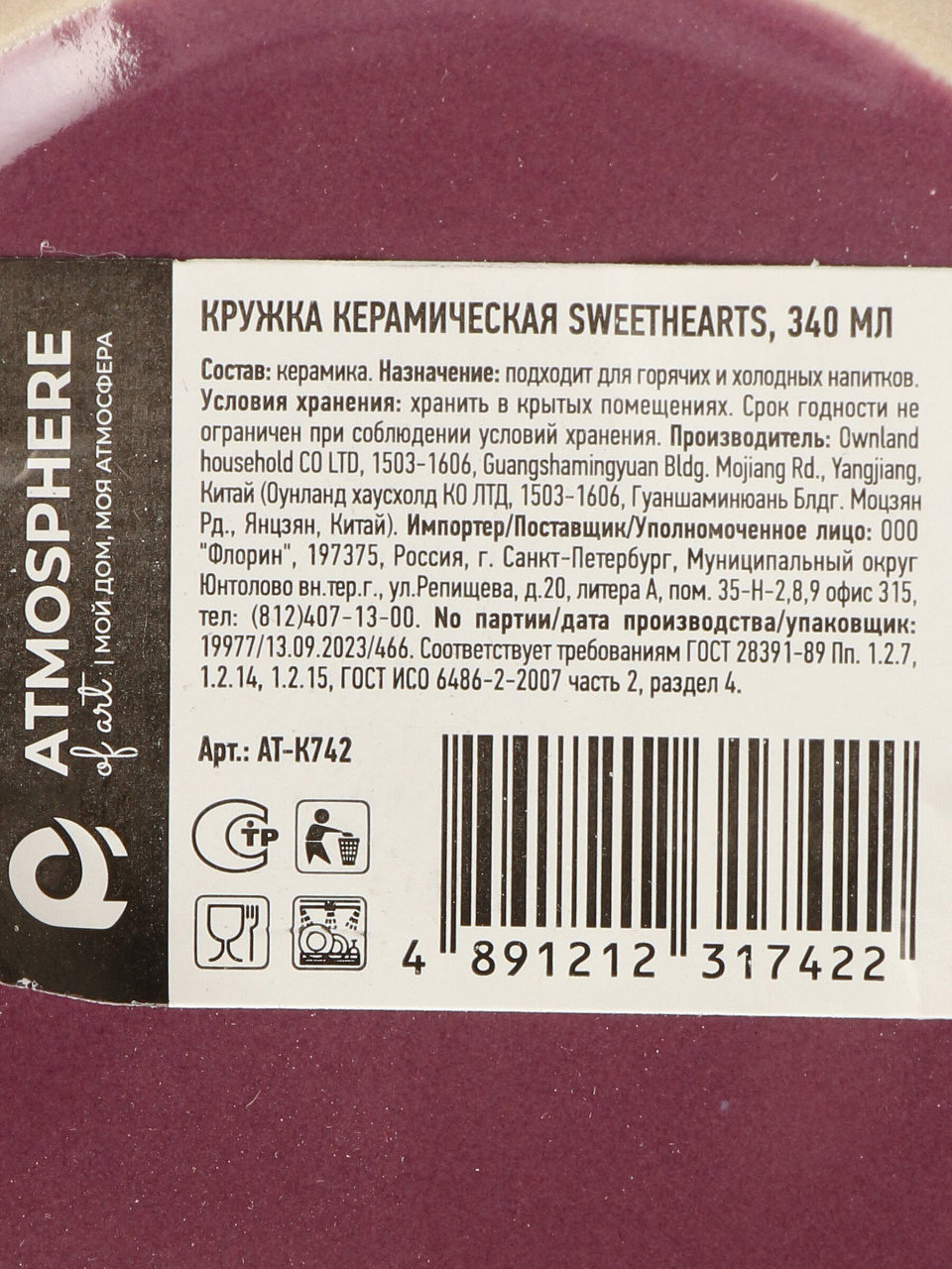 Кружка Atmosphere Sweethearts 340 мл — это выбор тех, кто ценит комфорт и эстетику. Керамика сохраняет температуру напитка дольше, чем стекло или пластик, а гладкая поверхность легко очищается даже в посудомоечной машине. Благодаря отсутствию эмалированного покрытия, кружка не впитывает запахи и подходит для горячих и холодных напитков — чая, кофе, какао или даже лимонада. Если вы ищете, какую кружку выбрать для микроволновки, эта модель полностью подходит, что подтверждено техническими характеристиками.