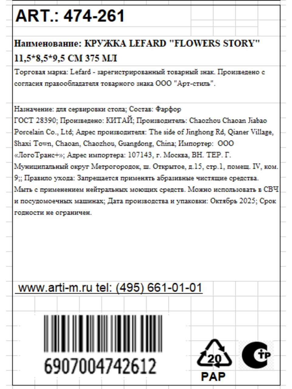 Вы можете приобрести «Кружка фарфор, 375 мл, Flowers Story, Lefard, 474-261» и другие товары в нашем интернет-магазине в Серпухове по низким ценам и с бесплатным самовывозом.