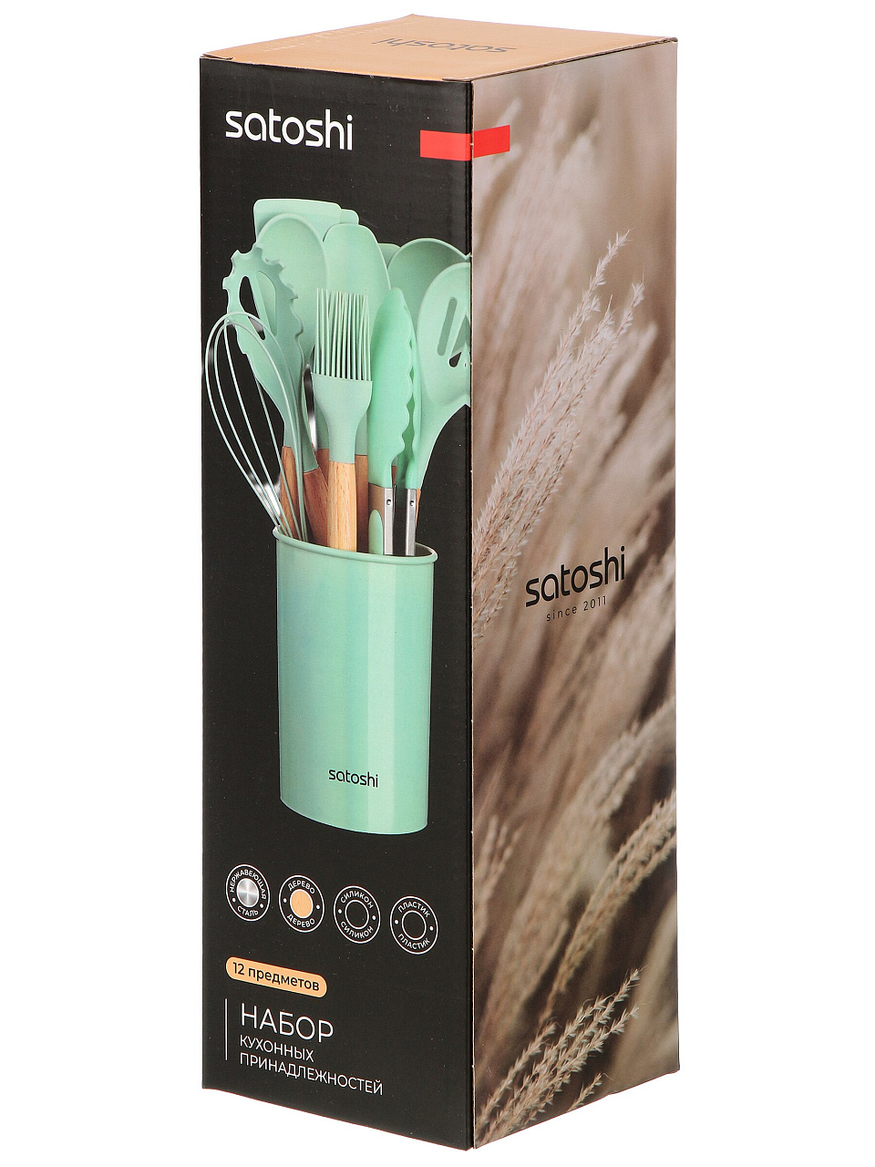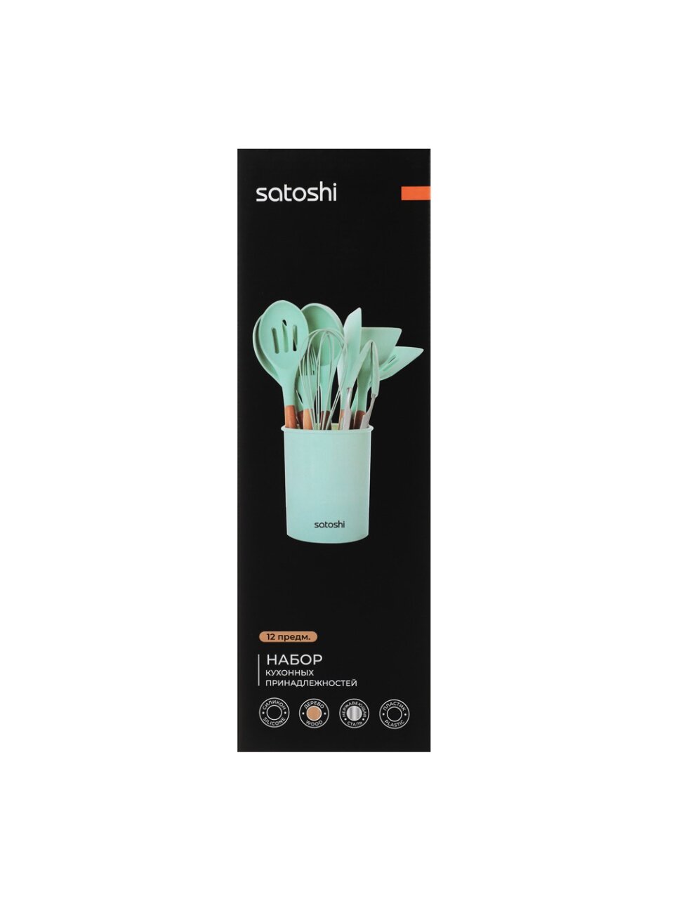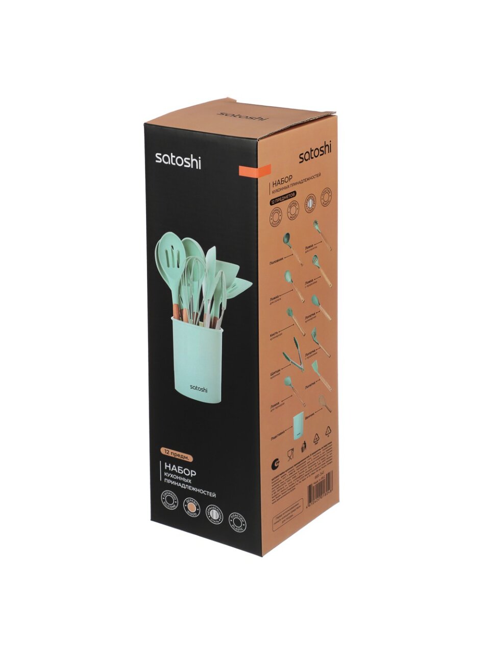 Набор кухонных принадлежностей Satoshi Аллон (12 пр., силикон + дерево, зелёный) — идеальный выбор для стильной кухни: долговечность, экологичность, универсальность.