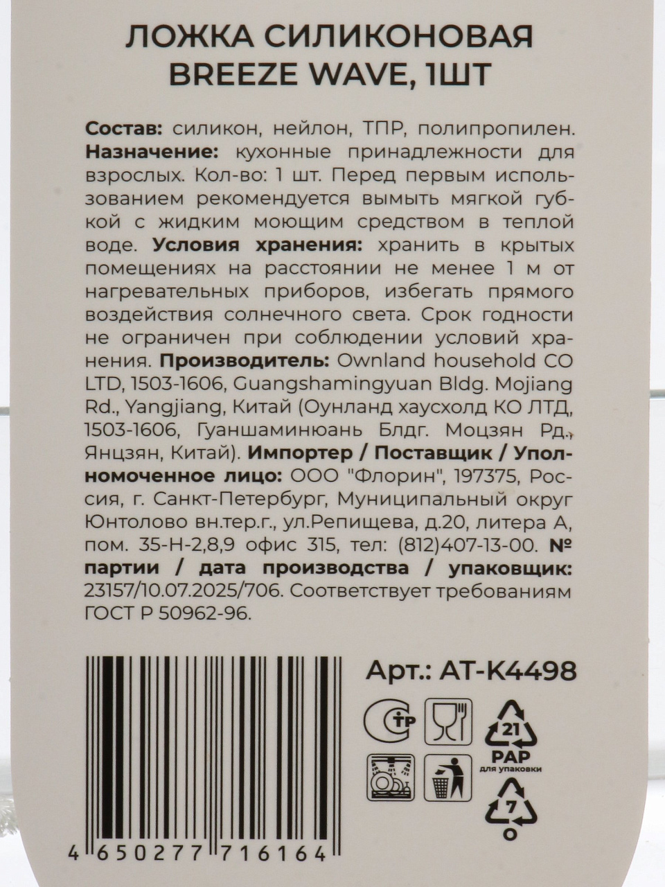 Вы можете приобрести «Ложка кулинарная, силикон, навеска, Atmosphere, Легкая волна/Breeze Wave, AT-K4498» и другие товары в нашем интернет-магазине в Борисоглебске по низким ценам и с бесплатным самовывозом.