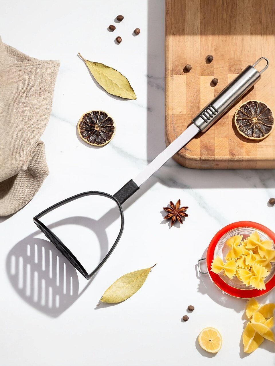Картофелемялка изготовленная из прочного и безопасного материала, станет верным помощников каждой хозяйке. Рабочая поверхность - нейлон. Изделие предназначено для посуды с антипригарным покрытием, не нагревается и удобна в использовании.