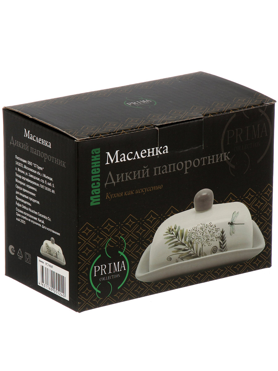 Масленка керамическая Prima Collection «Дикий папоротник», 17х8.5 см: стильное хранение масла для дома и дачи — идеальный подарок с долговечным покрытием.