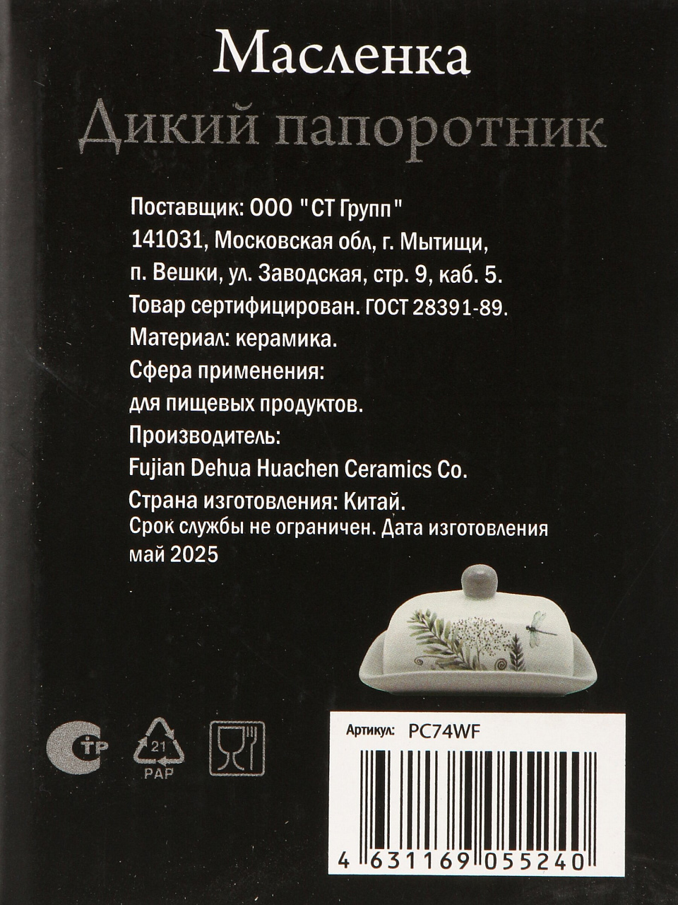 Вы можете приобрести «Масленка керамика, 17х8.5 см, крышка керамика, Prima Collection, Дикий папоротник, PC74WF/HC601R-C3» и другие товары в нашем интернет-магазине в Коврове по низким ценам и с бесплатным самовывозом.