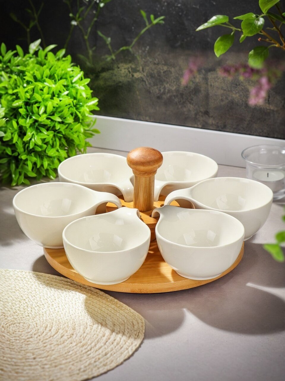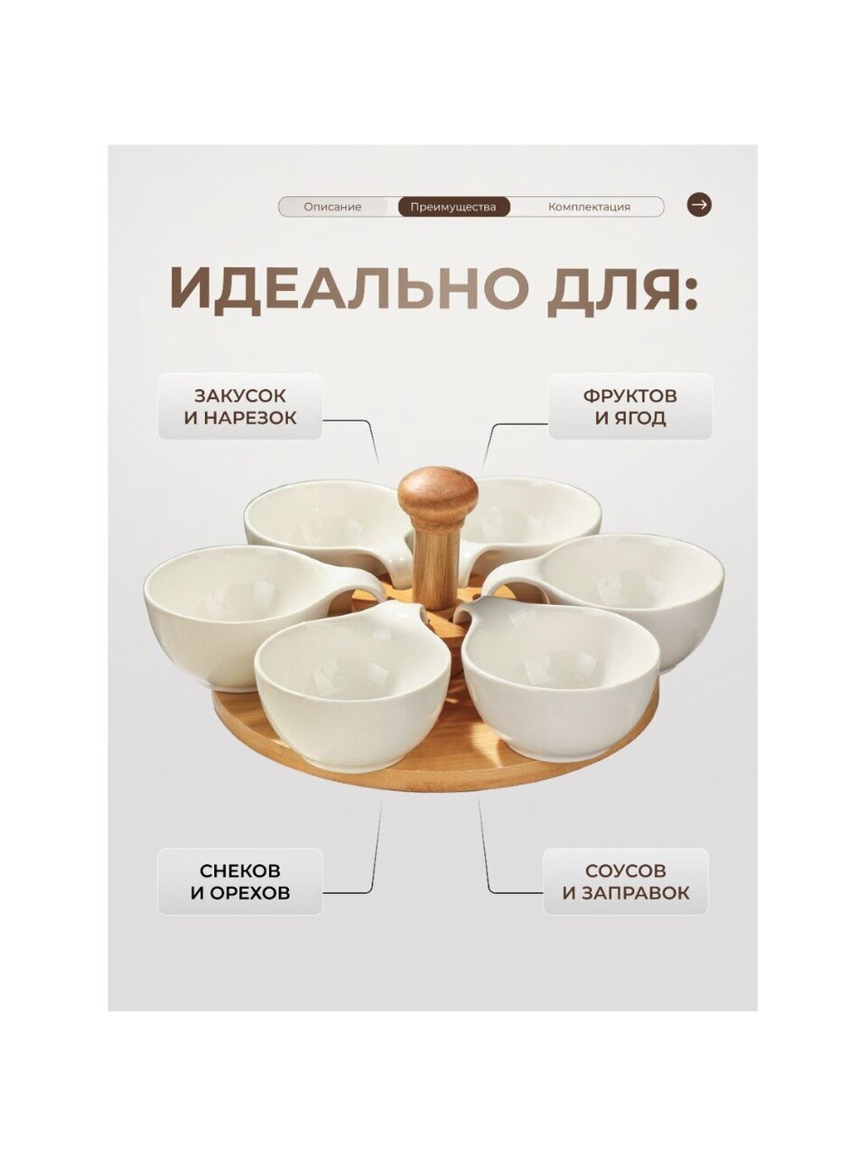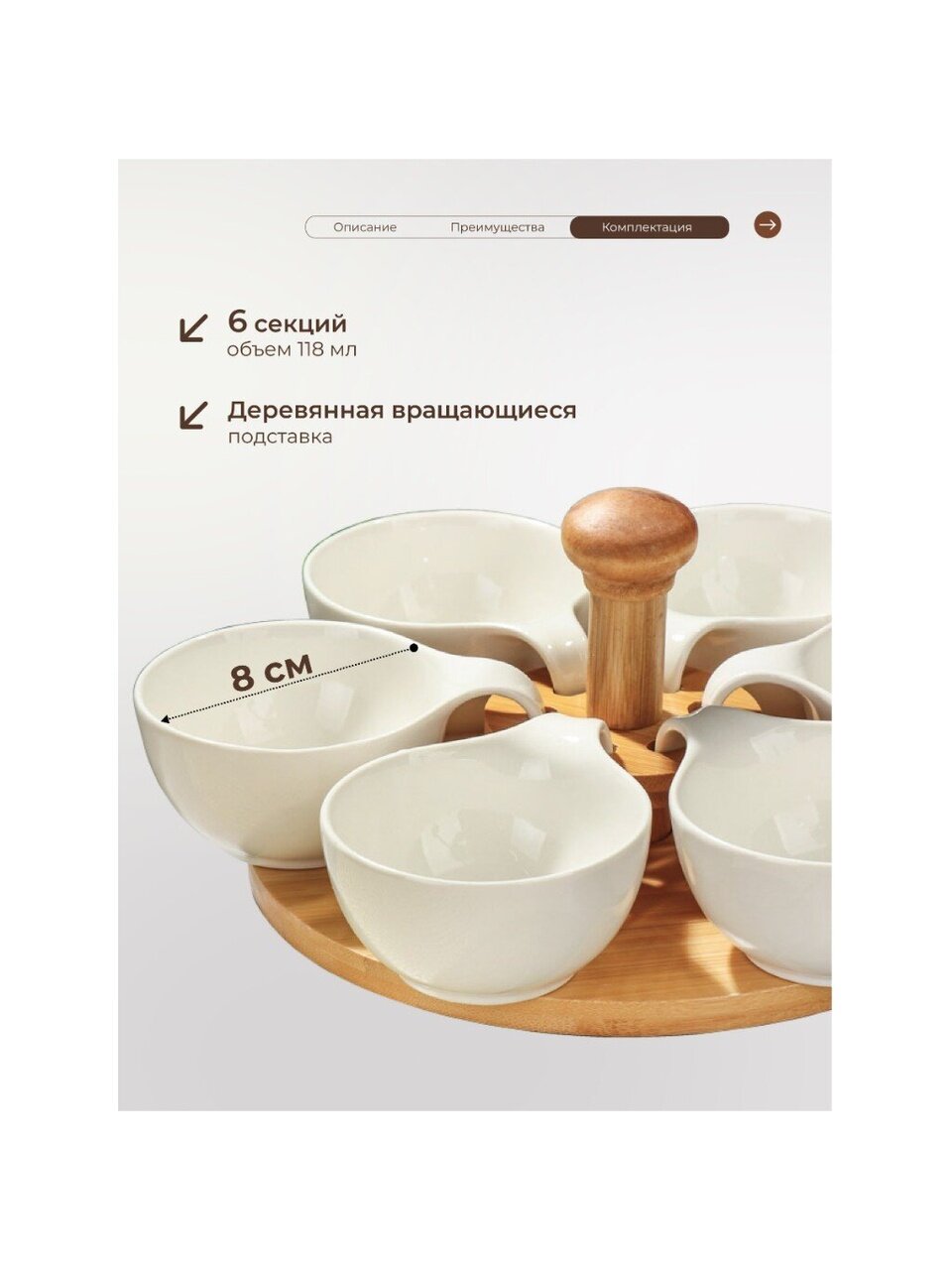 Вы можете приобрести «Менажница керамика, 26 см, 118 мл, 6 секций, бамбуковая подставка, Y6-2293» и другие товары в нашем интернет-магазине в Курске по низким ценам и с бесплатным самовывозом.
