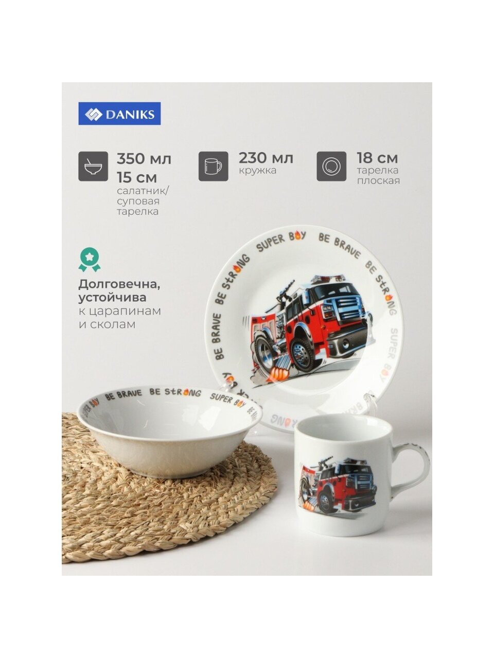 Вы можете приобрести «Набор посуды керамика, 3 шт, Пожарная машина, тарелка 18 см, салатник 15 см, кружка 230 мл, Daniks» и другие товары в нашем интернет-магазине в Белгороде по низким ценам и с бесплатным самовывозом.
