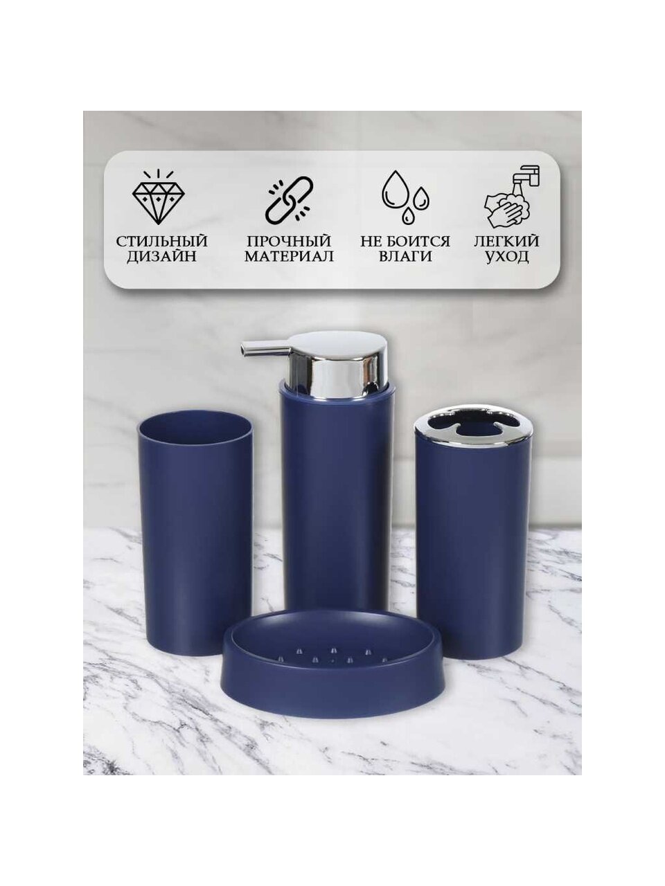 Вы можете приобрести «Набор для ванной 4 предмета, Аника, синий, пластик, стакан, подставка для зубных щеток, дозатор для мыла, мыльница, Y9-079» и другие товары в нашем интернет-магазине в Ельце по низким ценам и с бесплатным самовывозом.