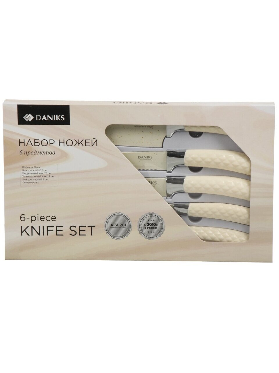 Вы можете приобрести «Набор ножей 6 предметов, подарочная упаковка, белый, нержавеющая сталь, рукоятка пластик, Daniks, YW-A454-PB» и другие товары в нашем интернет-магазине в Ставрополе по низким ценам и с бесплатным самовывозом.