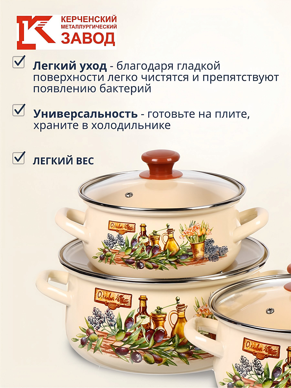 Набор кастрюль Керченский металлургический завод Италика-1-Экстра — это идеальное решение для тех, кто ищет, какую посуду выбрать для ежедневного использования на кухне. Эмалированная сталь не только долговечна, но и безопасна для здоровья, не выделяет вредных веществ при нагреве. В отличие от алюминиевых и тефлоновых аналогов, эмаль устойчива к истиранию и не требует особого ухода. Если вы спрашиваете, чем отличается эмалированная посуда, — она лучше сохраняет вкус продуктов и легко очищается.