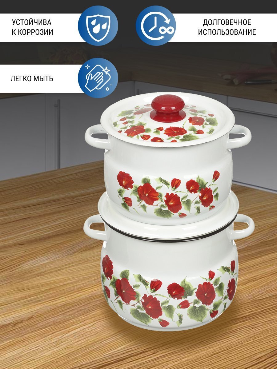 Набор эмалированной посуды Сибирские товары Рамо 10 (4 предмета, кастрюли 4 и 5,5 л) — идеальное решение для дома и дачи: долговечность, стиль, доступная цена.