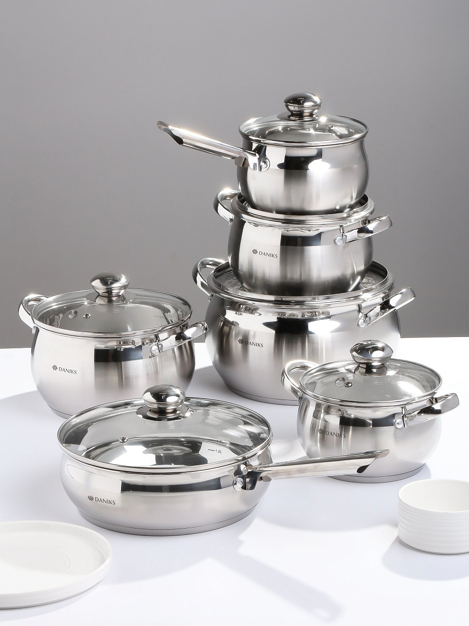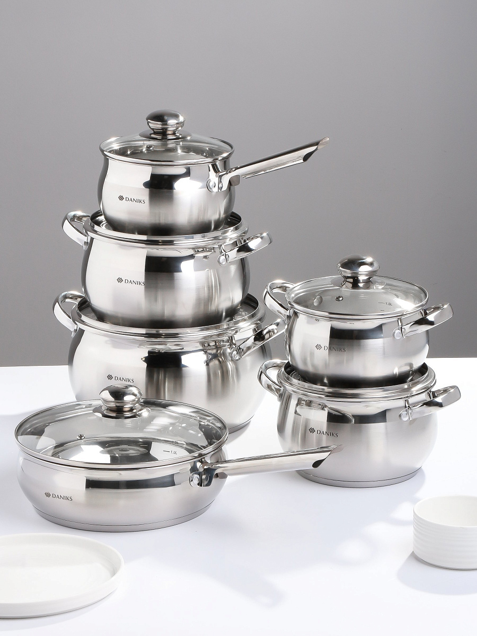 Набор посуды из нержавеющей стали Daniks Классика 12 предметов: универсальное решение для кухни, дачи и подарка. Готовьте супы, каши и пюре на любой плите — долговечно и выгодно.