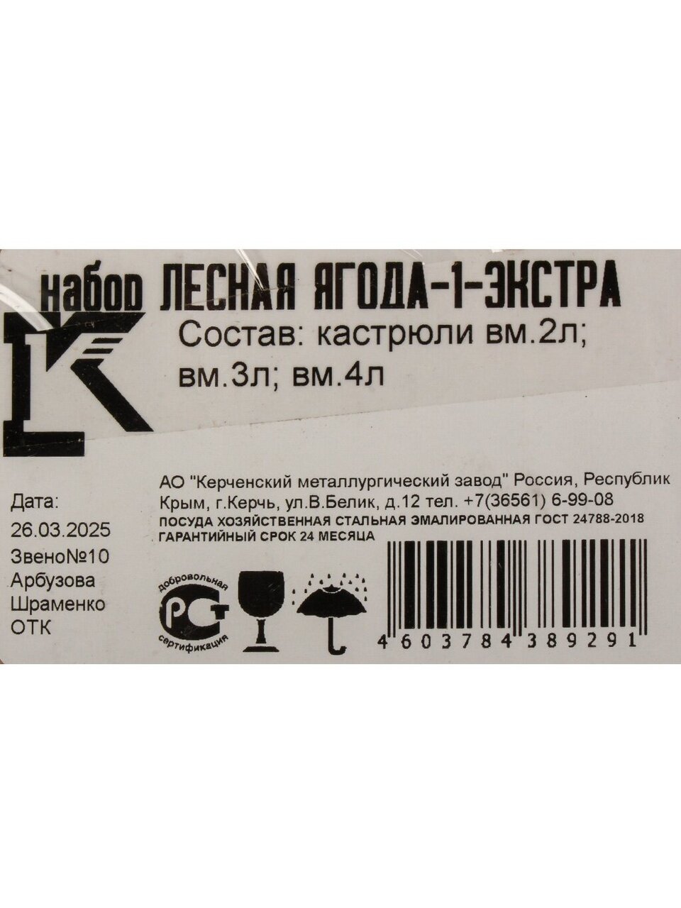 Вы можете приобрести «Набор посуды эмалированная сталь, 3 предмета, кастрюли 2, 3, 4 л., МП, Керченский металлургический завод, Лесная ягода-1-Экстра, белый» и другие товары в нашем интернет-магазине в Смоленске по низким ценам и с бесплатным самовывозом.