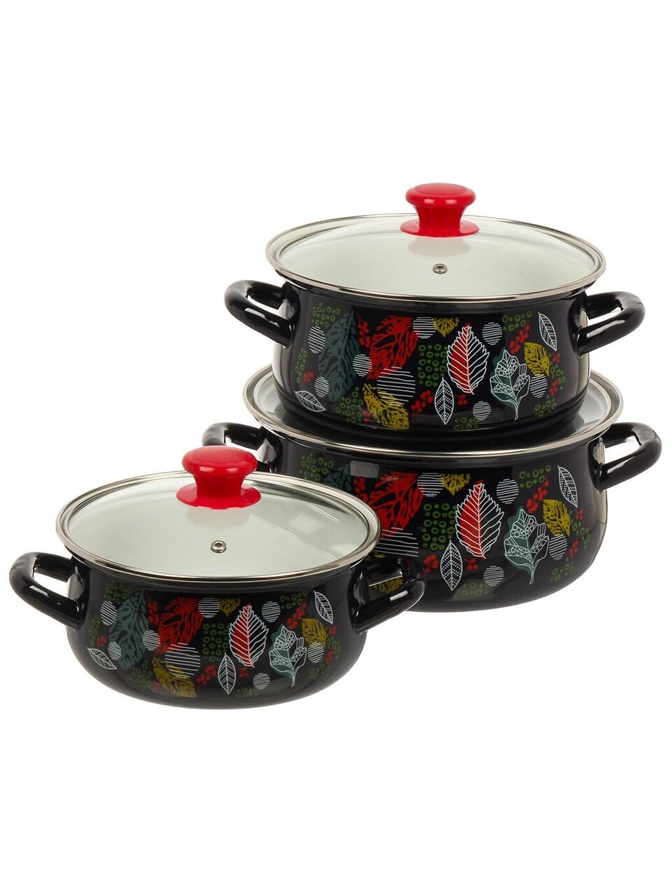 Набор эмалированных кастрюль 2/3/4 л. «Лесная ягода-1-Экстра» — долговечная посуда для дома и дачи: экологичность, универсальность, выгодная цена.
