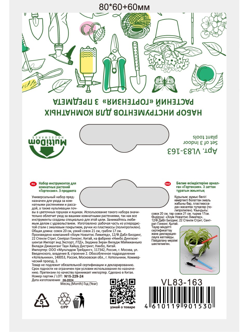 Инструменты изготовлены из износостойких материалов, устойчивых к влаге и коррозии. Страна продавца — Китай, бренд Мультидом.