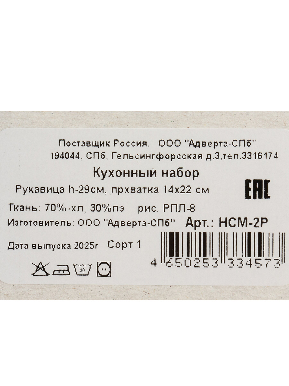 - Удобные размеры: варежка 29 см, прихватка 22×14 см — подходят для любой руки и посуды.