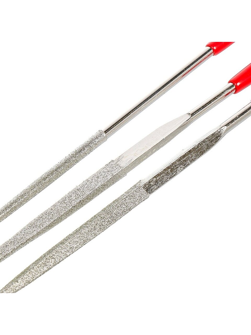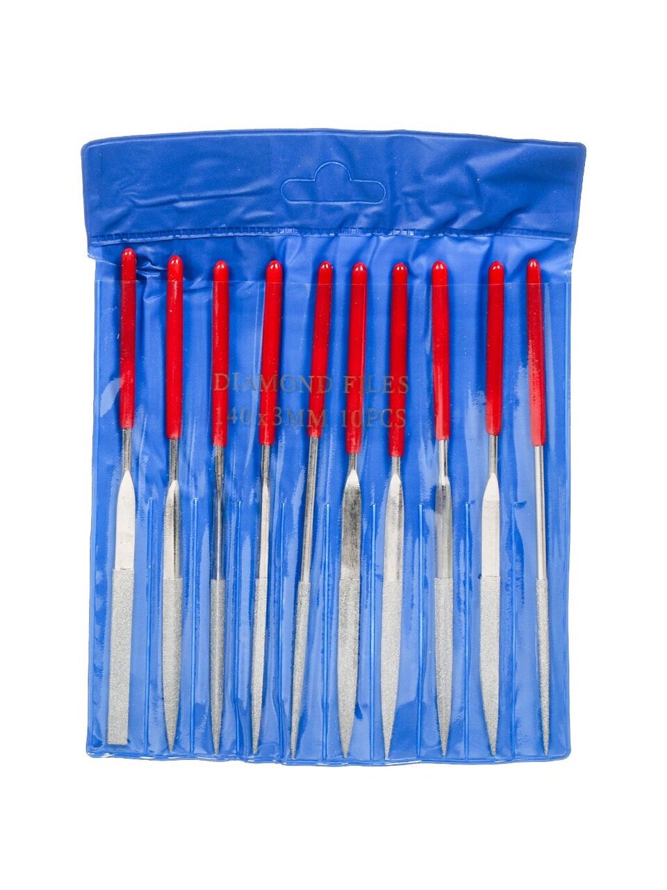 Набор алмазных надфилей применяется для обработки закаленной стали, керамики и других материалов. При работе их необходимо смачивать водой. Подходят для того, чтобы придать необходимую форму краям поверхности изделия. Набор состоит из десяти предметов.