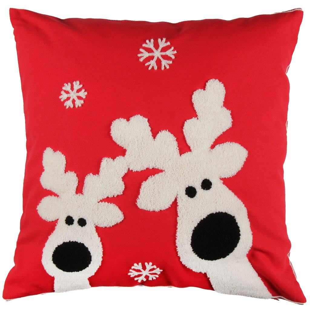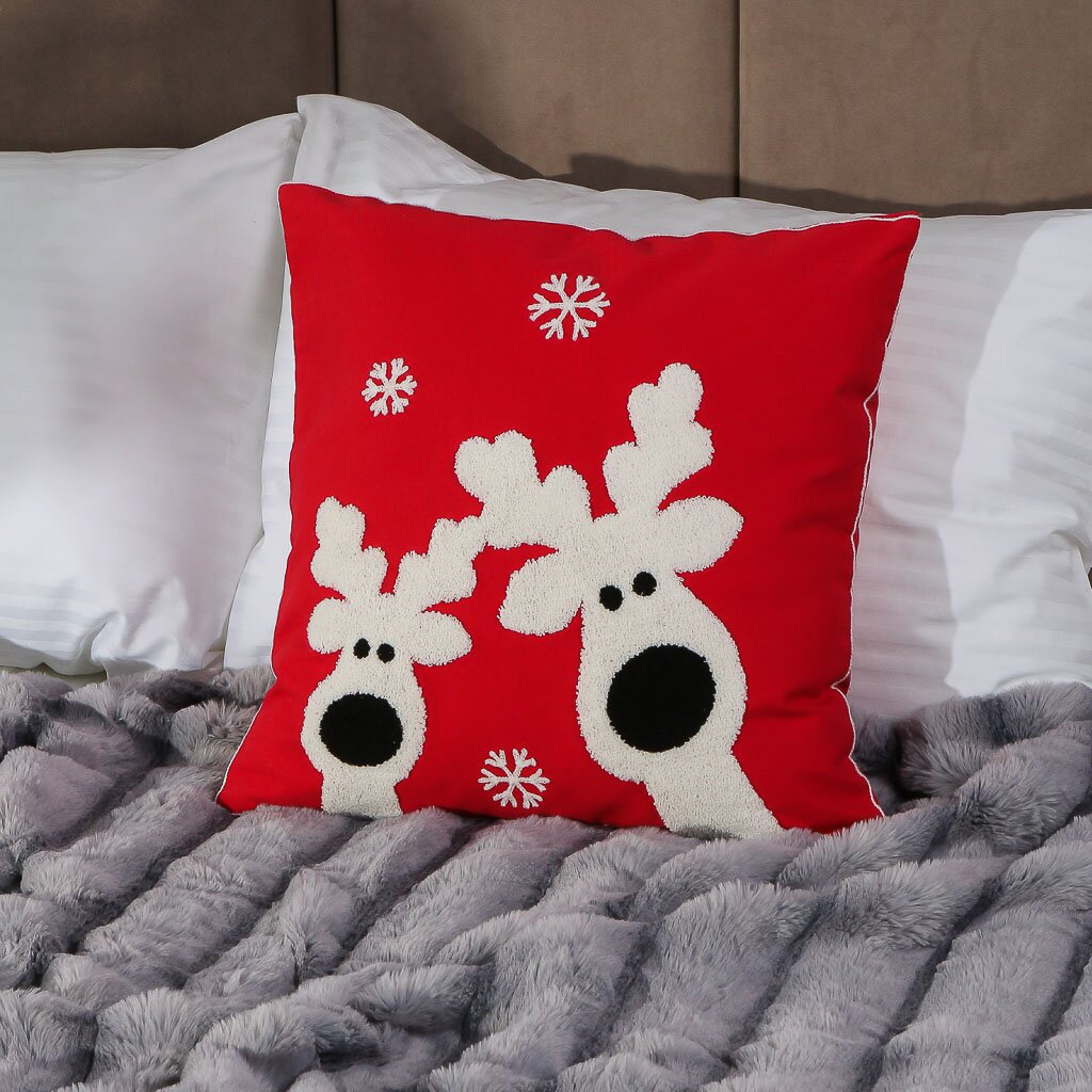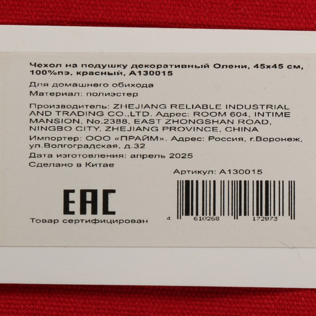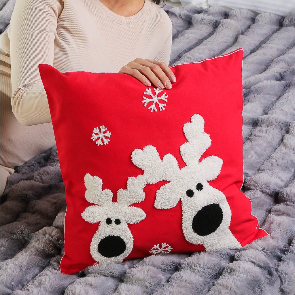 Чехол на подушку декоративный Олени, 45х45 см, 100%пэ, красный, A130015