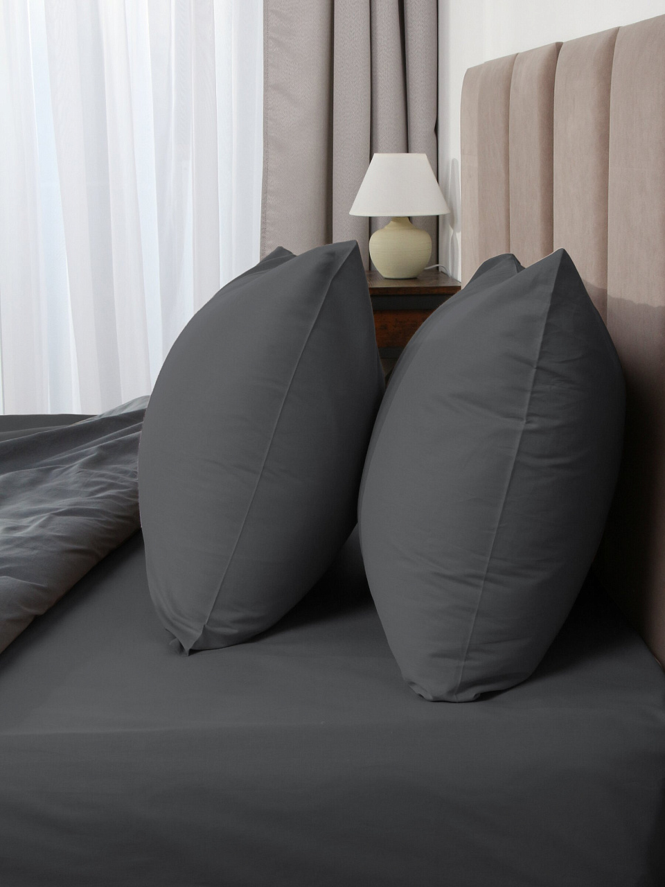 Комплект из 2 наволочек Silvano 50х70 см из 100% хлопка поплин: долговечный комфорт, стильный темно-серый цвет и оптимальная цена для дома и дачи.