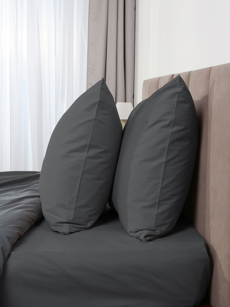 Комплект из 2 наволочек Silvano 70х70 см из 100% хлопка поплин — комфортный сон без раздражения кожи, универсальный размер, стильный тёмно-серый цвет для любого интерьера.