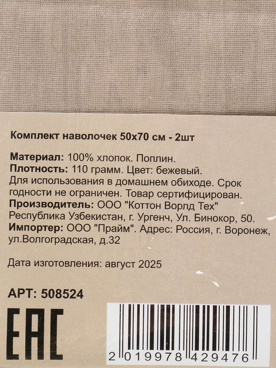 - Комплект из 2 наволочек в бежевом цвете — отличный выбор для дома, дачи или подарка.