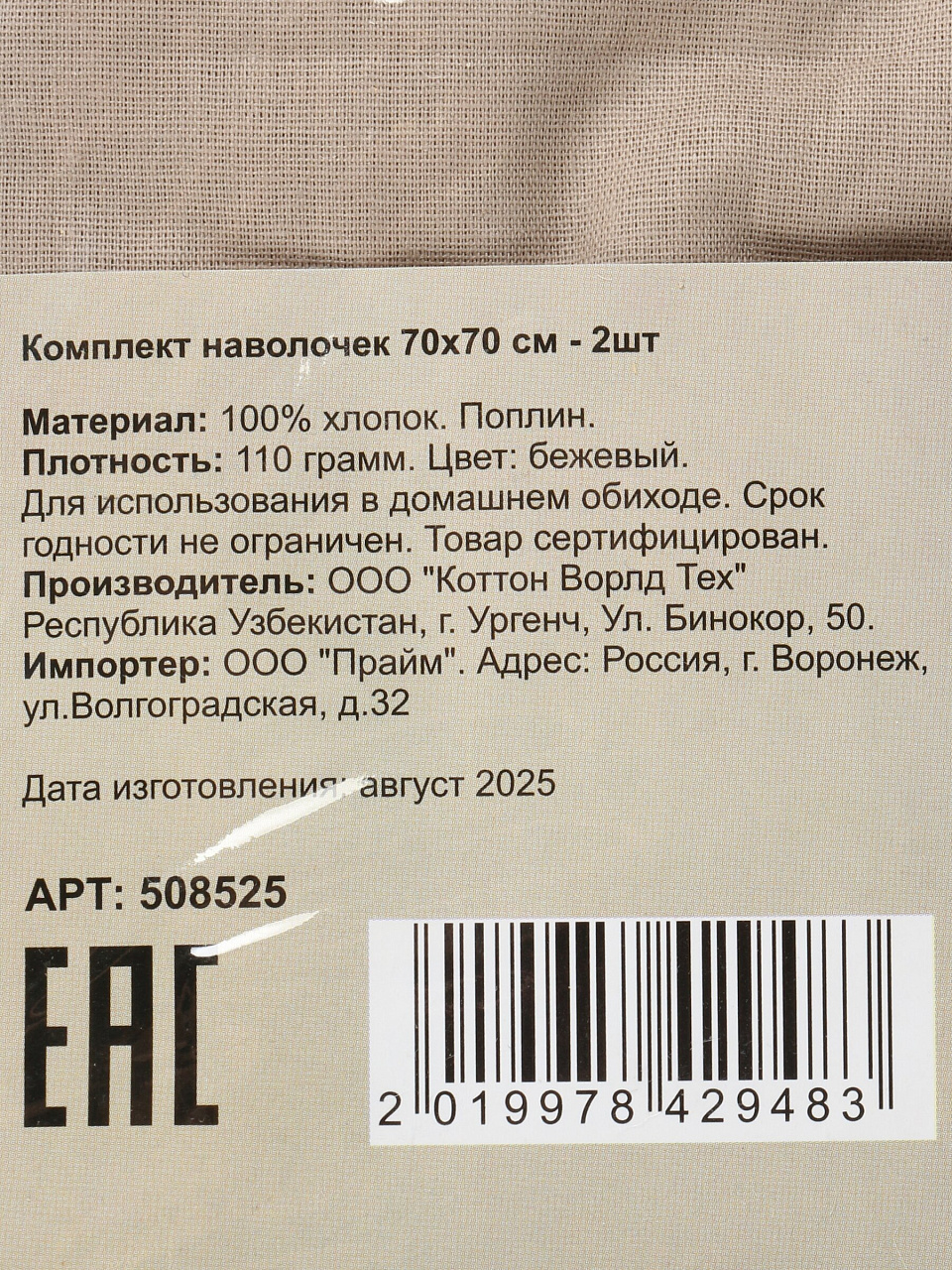 Вы можете приобрести «Наволочка 2 шт, Silvano, поплин, 100% хлопок, 70 х 70 см, бежевая, 110 г/м2, Узбекистан» и другие товары в нашем интернет-магазине в Белгороде по низким ценам и с бесплатным самовывозом.