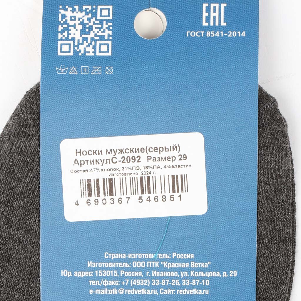 Вы можете приобрести «Носки для мужчин, хлопок, Красная ветка, серые, р. 29, С2092» и другие товары в нашем интернет-магазине в Обнинске по низким ценам и с бесплатным самовывозом.