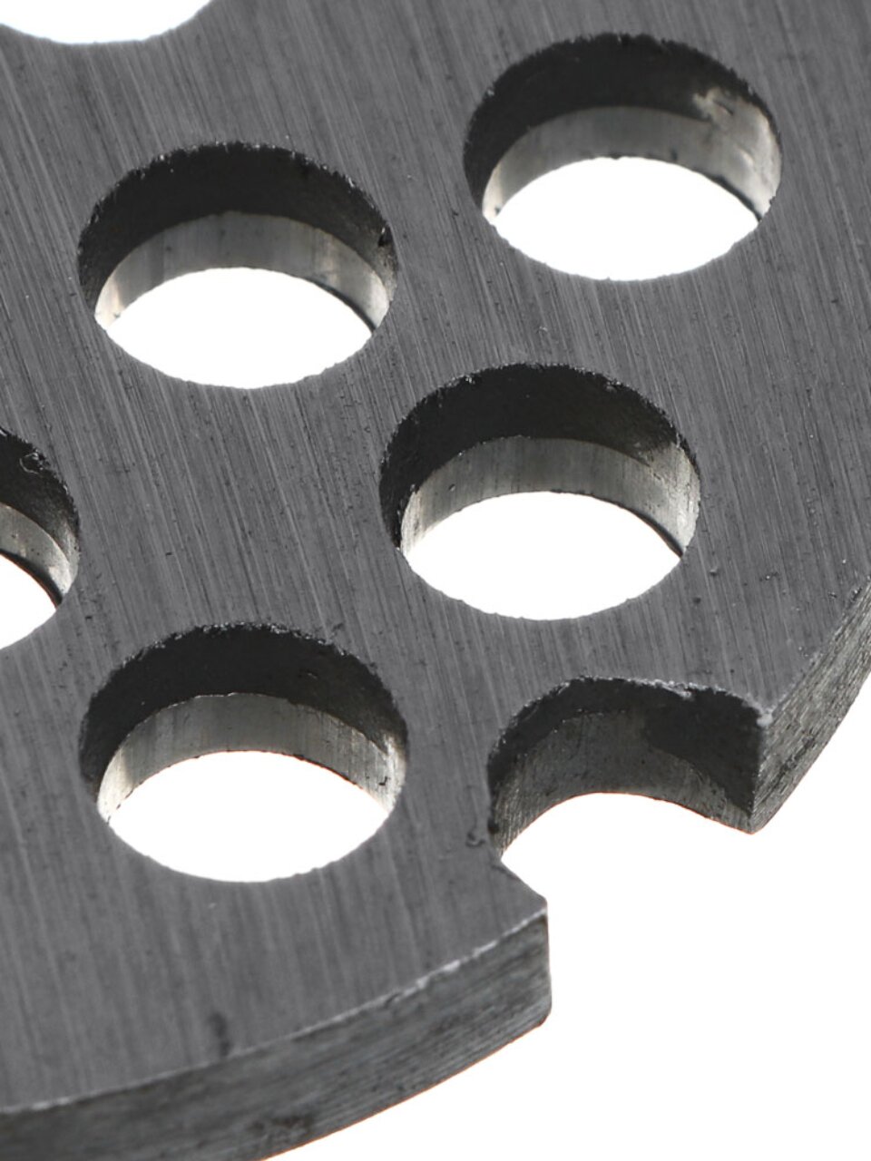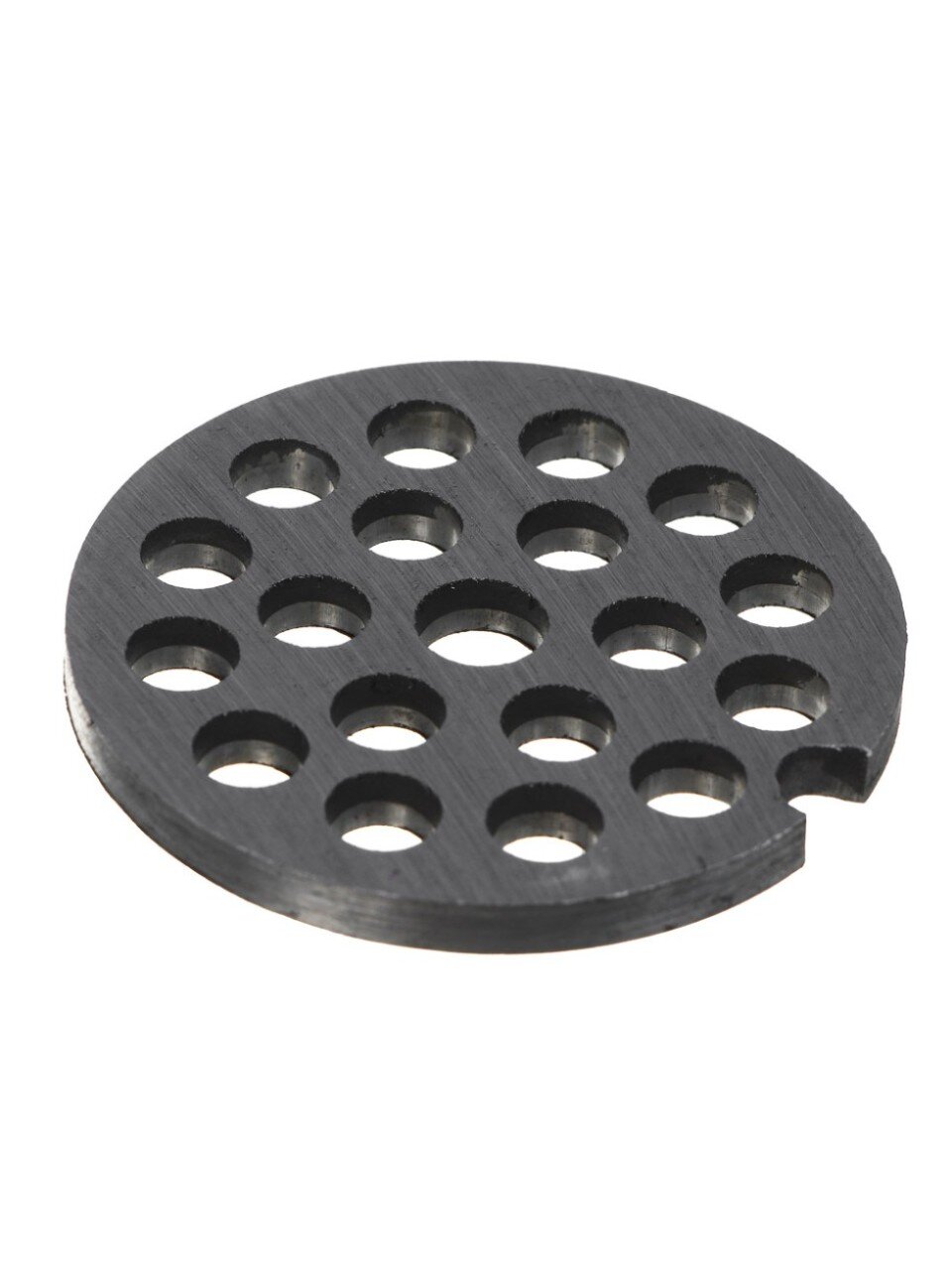 Многие спрашивают: «Подходит ли эта решетка для моей мясорубки?» — стандартный диаметр 53 мм делает её совместимой с большинством распространённых моделей, а универсальный размер отверстий позволяет получить фарш средней фракции, подходящий для котлет, домашних колбас и других блюд. В отличие от пластиковых аналогов, стальная решетка служит дольше и выдерживает интенсивное использование, что особенно важно для дачи или большой семьи.
