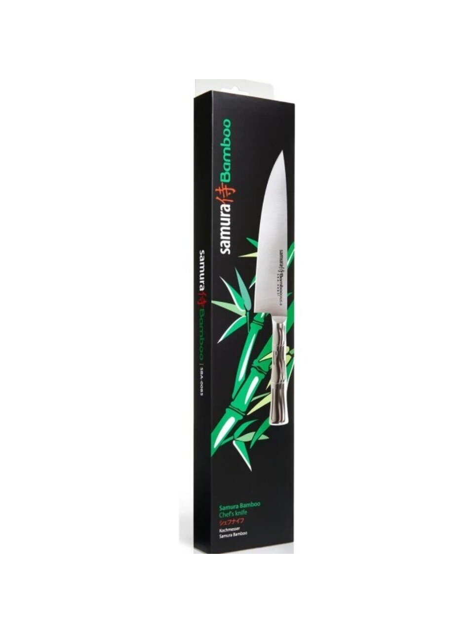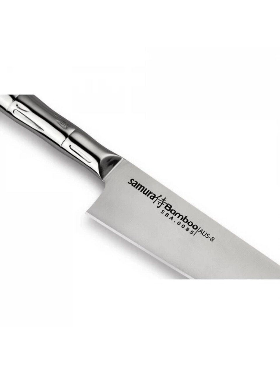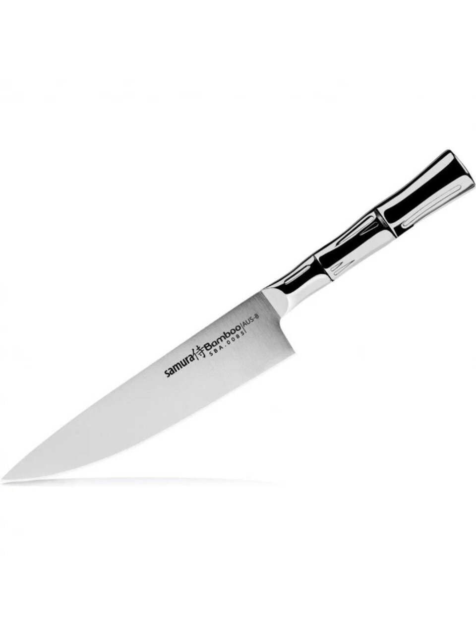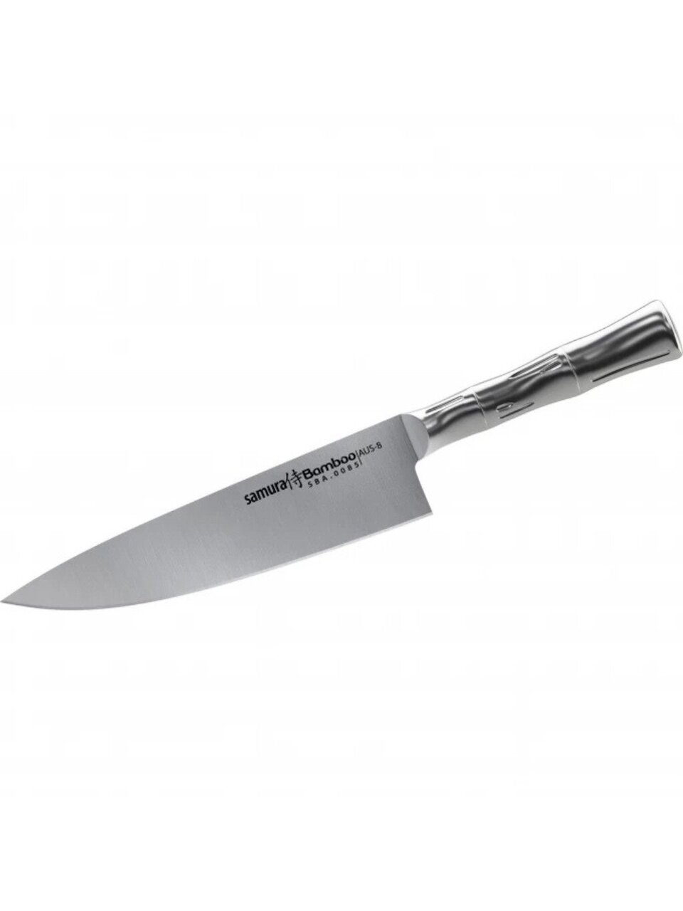 Вы можете приобрести «Нож кухонный Samura, Bamboo, шеф-нож, нержавеющая сталь, 20 см, рукоятка сталь, SBA-0085/K» и другие товары в нашем интернет-магазине в Смоленске по низким ценам и с бесплатным самовывозом.