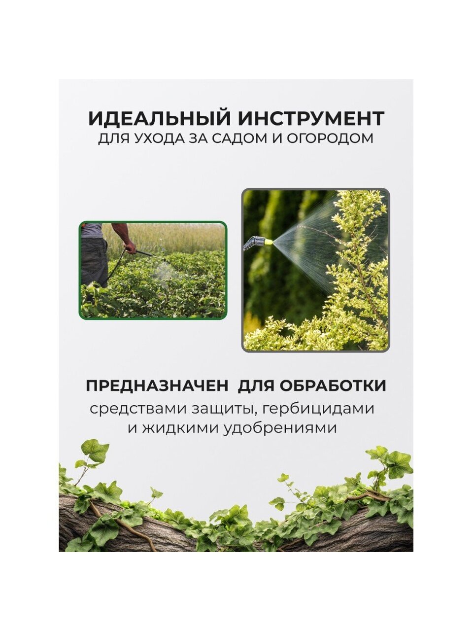 Мерная шкала на баке показывает остаток содержимого. Предохранительный клапан срабатывает при избыточном давлении, что обеспечивает безопасность в процессе эксплуатации опрыскивателя. Алюминиевый брандспойт надежен и удобен в применении. Регулировка струи на брандспойте даёт возможность использовать опрыскиватель как для защиты растений от вредителей, так и для полива.