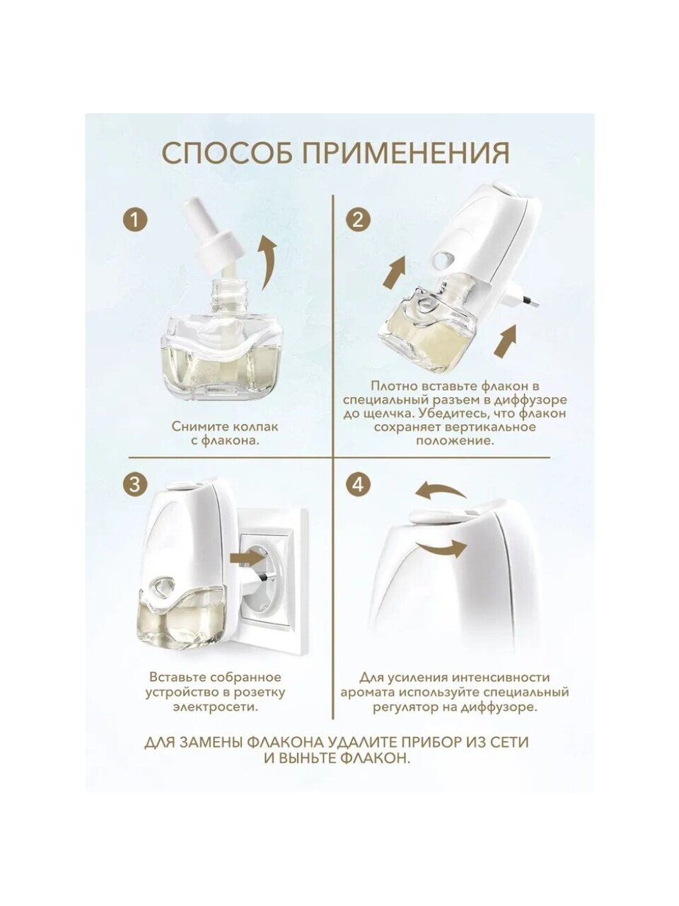 Электрический диффузор для ароматизации воздуха в помещении + сменный флакон с ароматической жидкостью.