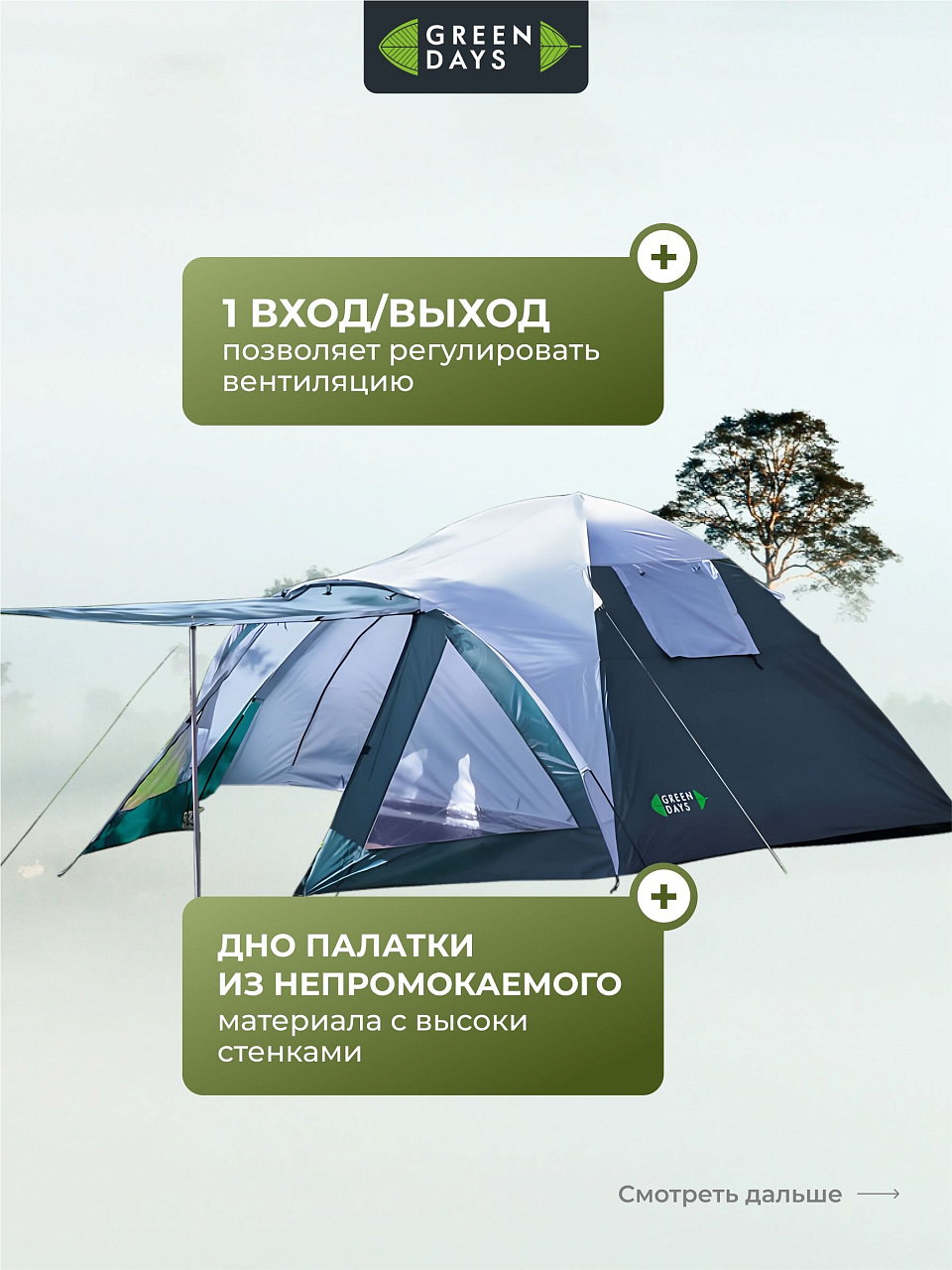 Независимо от того куда Вы отправляетесь, в поход, на рыбалку или кемпинг - у нас есть выбор вариантов палаток, в которых Вам будет комфортно наслаждаться прекрасным отдыхом на свежем воздухе. Сделайте свое приключение незабываемым, выбрав палатку Green Days.