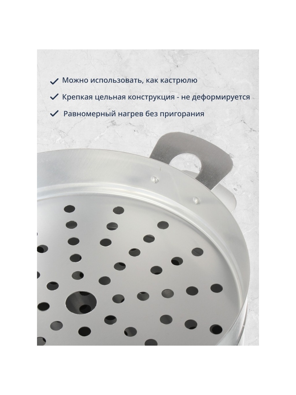 Мантоварка Калитва - это надежный инструмент для приготовления разнообразных блюд. Она идеально подходит для тушения, варки и приготовления на пару. Алюминиевый корпус обеспечивает равномерное распределение тепла, что позволяет добиться идеальных результатов при каждом использовании. Отсутствие эмалированного и антипригарного покрытия делает ее более экологически чистым выбором, сохраняя натуральные вкусы и ароматы продуктов.