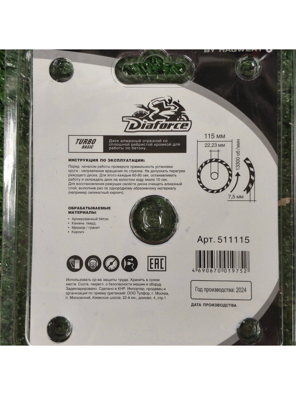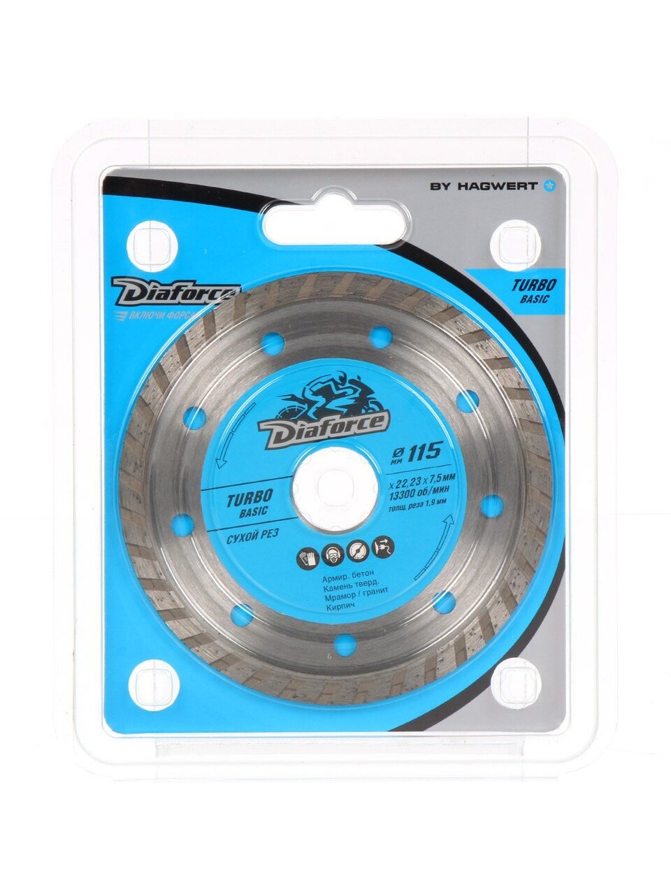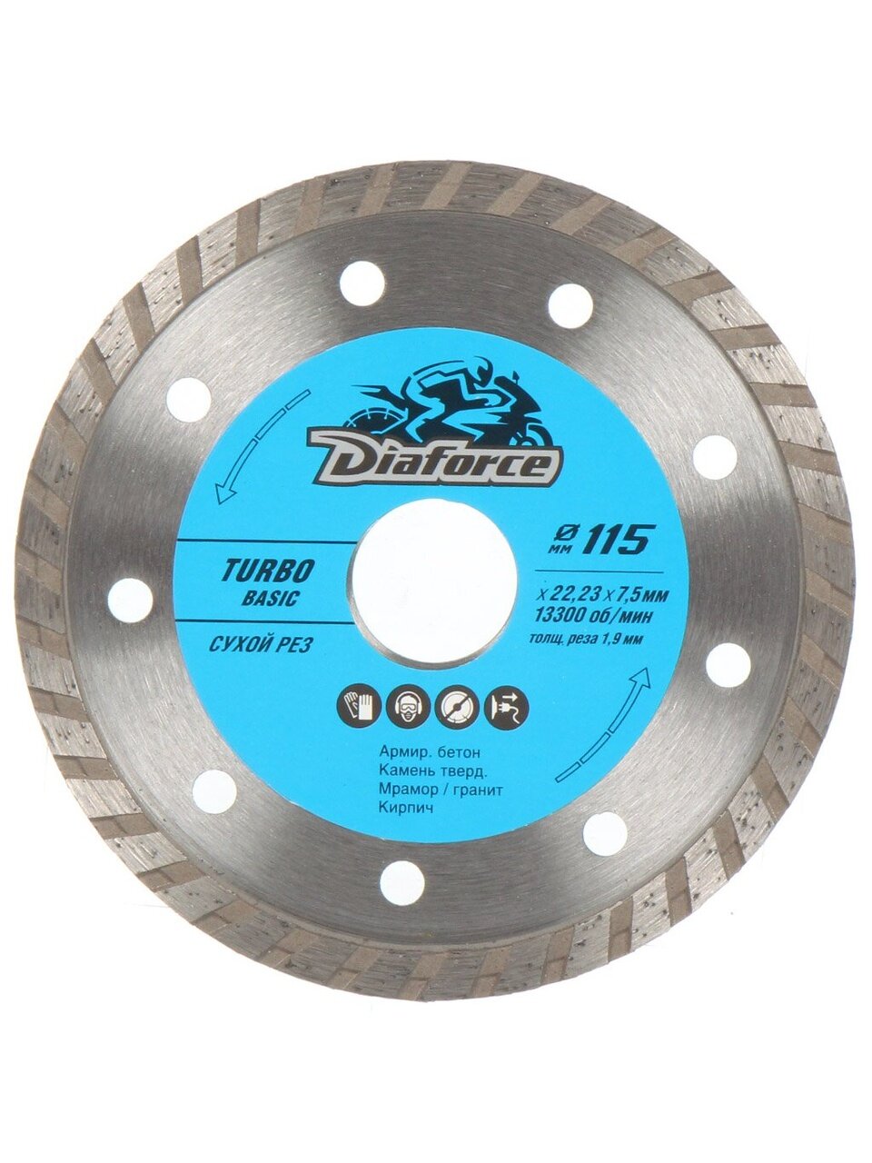 Вы можете приобрести «Диск отрезной алмазный по армированному бетону, Diaforce, Turbo Basic, сплошной край, 115х22.23х1.9 мм, сухой рез, 511115» и другие товары в нашем интернет-магазине в Железногорске по низким ценам и с бесплатным самовывозом.