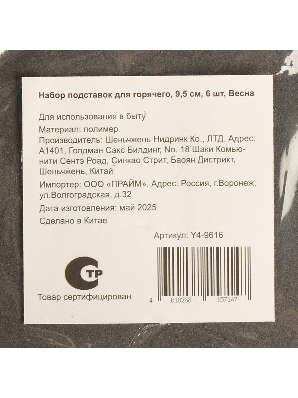 Вы можете приобрести «Набор подставок под горячее, полимер, 6 шт, квадратный, 9.5 см, Daniks, Весна, Y4-9616» и другие товары в нашем интернет-магазине в Смоленске по низким ценам и с бесплатным самовывозом.