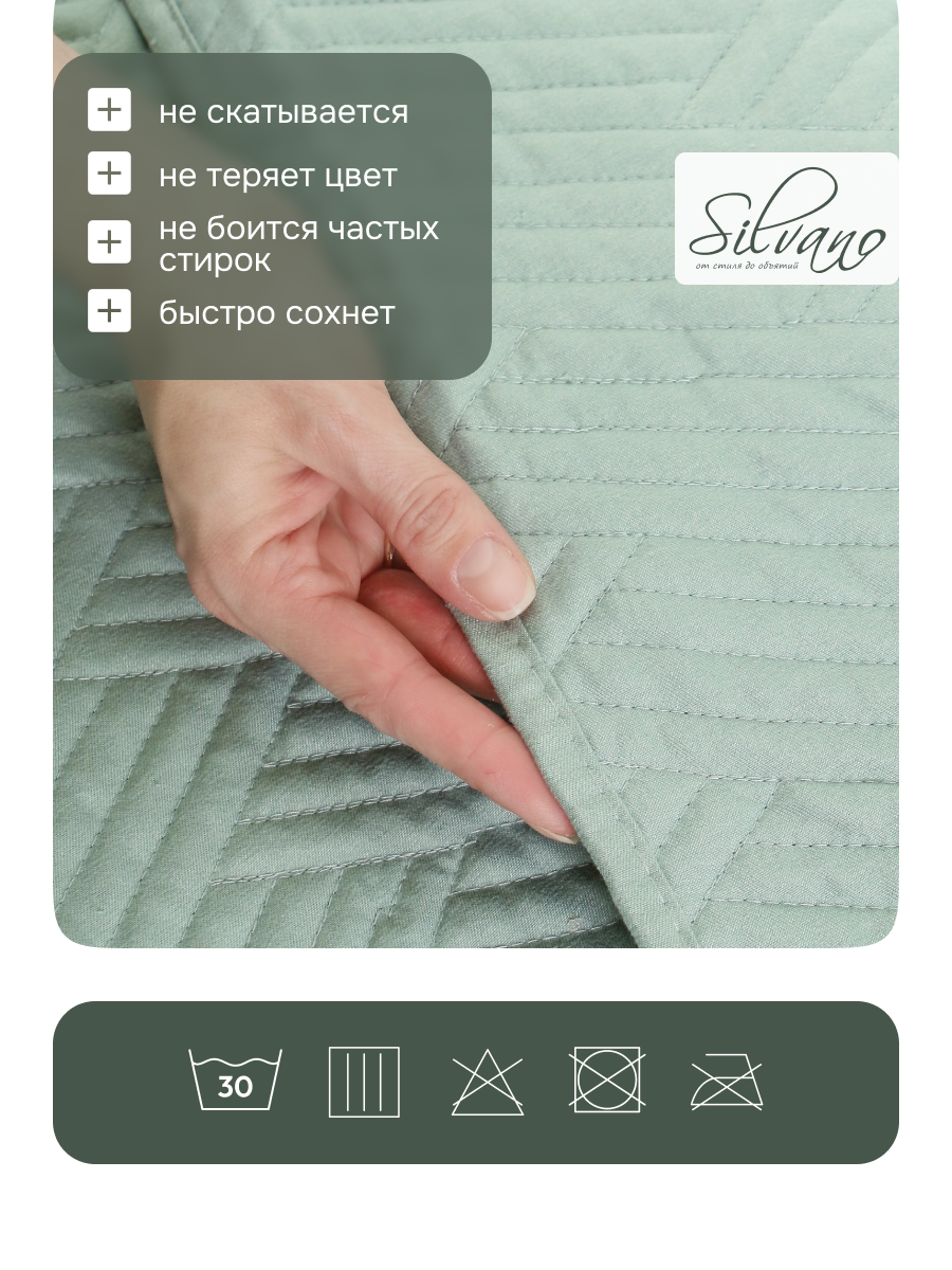 Покрывало евро Silvano Кантри 240х260 см — лучший выбор для тех, кто ищет недорогое покрывало на кровать или диван с современным дизайном. Однотонное серо-мятное покрывало легко впишется в интерьер в стиле минимализм, а прочный полиэстер обеспечивает простоту ухода — достаточно машинной стирки, чтобы сохранить свежесть цвета и формы. Стеганая структура делает покрывало особенно устойчивым к истиранию и сохраняет аккуратный вид даже при ежедневном использовании.