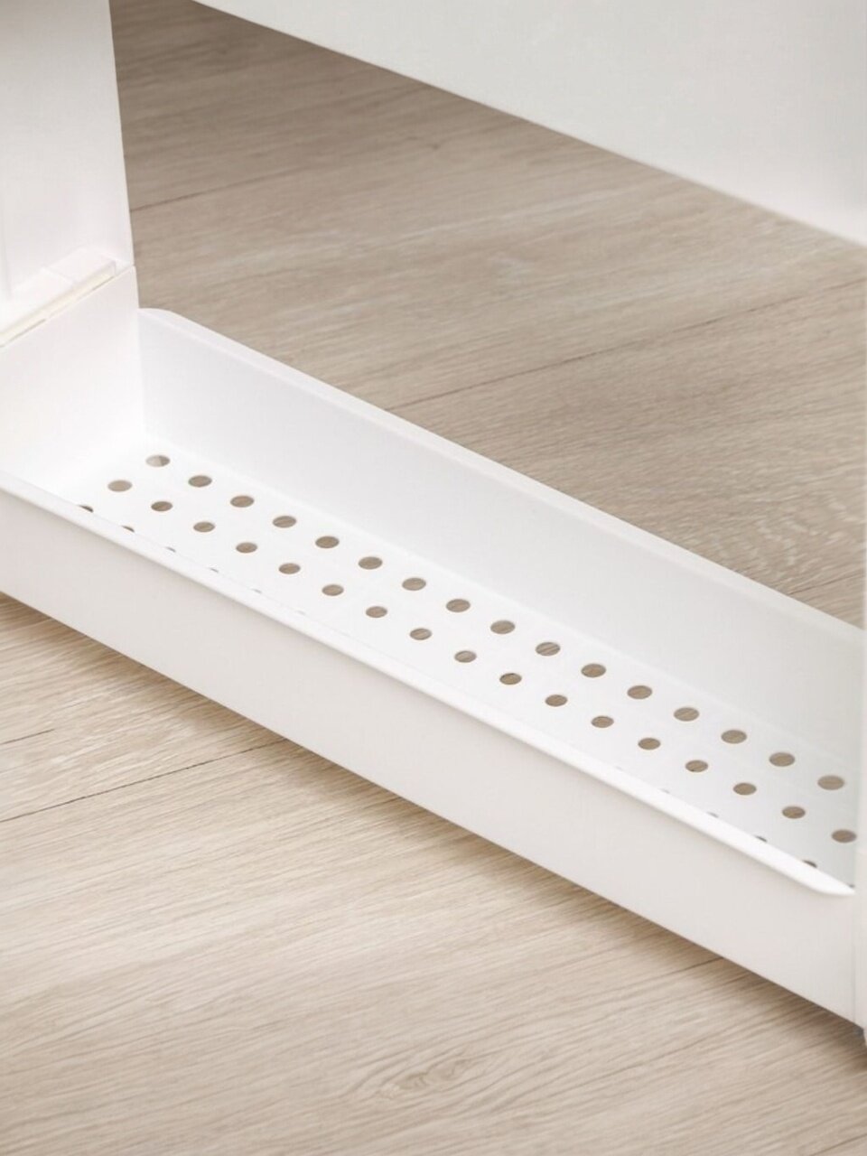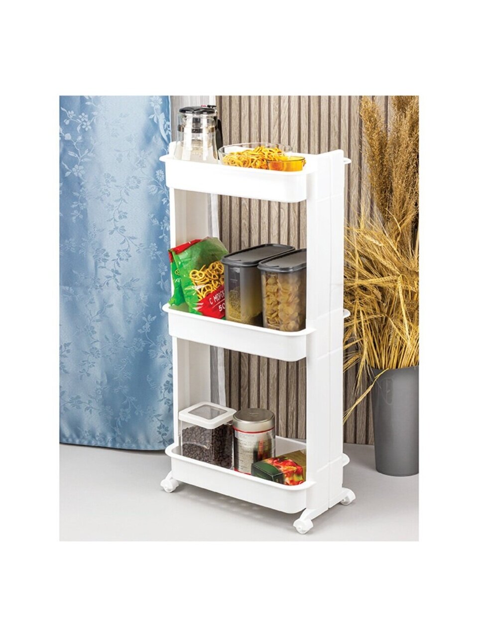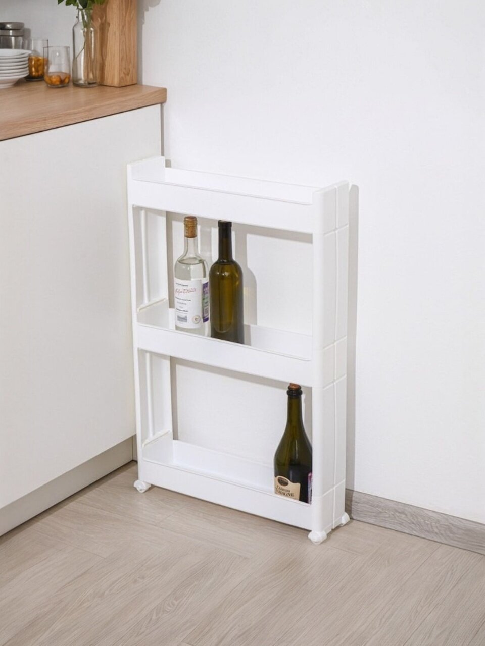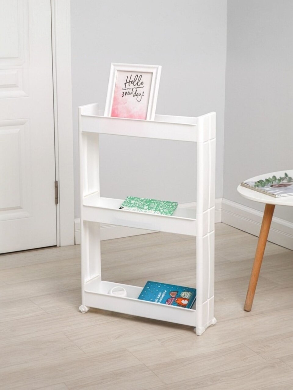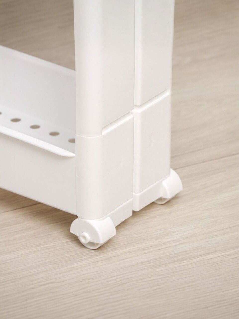 - Пластиковые этажерки легкие, устойчивые к влаге и просты в уходе.