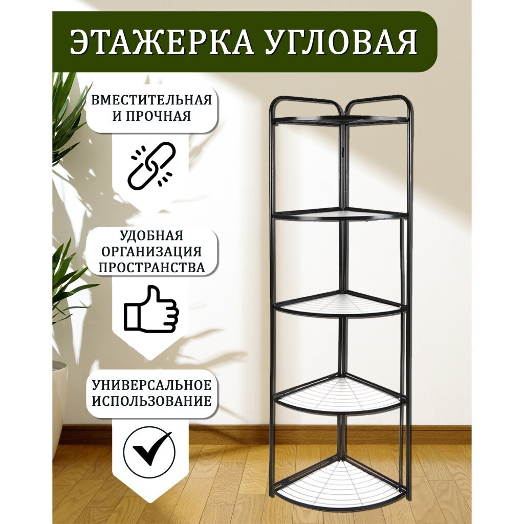 С помощью угловой полки вы можете расширить пространство для хранения, используя углы вашего дома. Полка напольная 5-ярусная предназначена для хранения различных предметов в ванной комнате и других помещениях. Имеет покрытие, которое позволяет изделию не терять свой внешний вид. Компактна и удобна в использовании. При необходимости легко передвинуть за счет небольшого веса полки. Одним из основных преимуществ таких полок является то, что они упрощают поиски нужных предметов, поскольку все необходимое находится под рукой.
