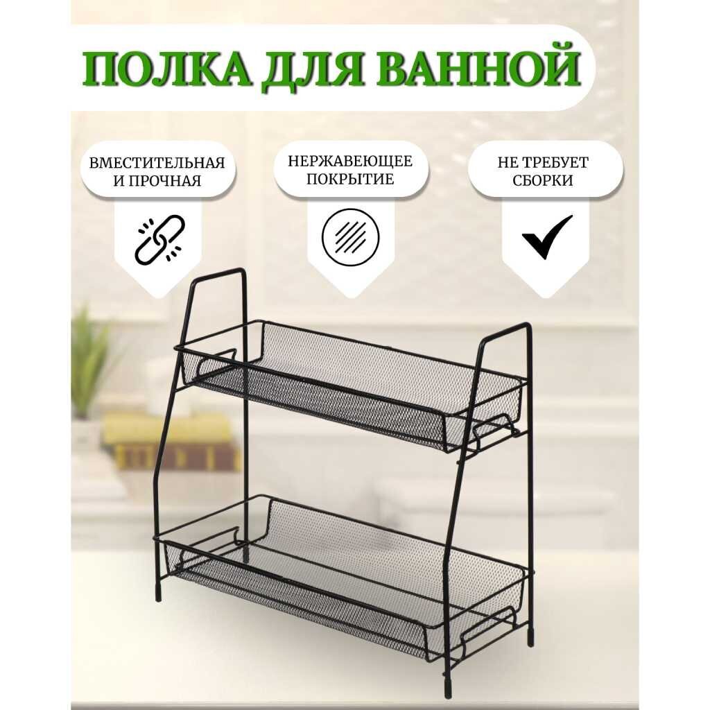 Двухъярусная полка идеально подходит для хранения шампуней, гелей, мыла, мочалок, полотенец и других предметов гигиены. Прочная металлическая поверхность устойчива к влаге и легко очищается, что особенно важно для использования в условиях повышенной влажности. Черный цвет придает изделию элегантность и современный вид, что делает полку не только функциональным, но и стильным аксессуаром.