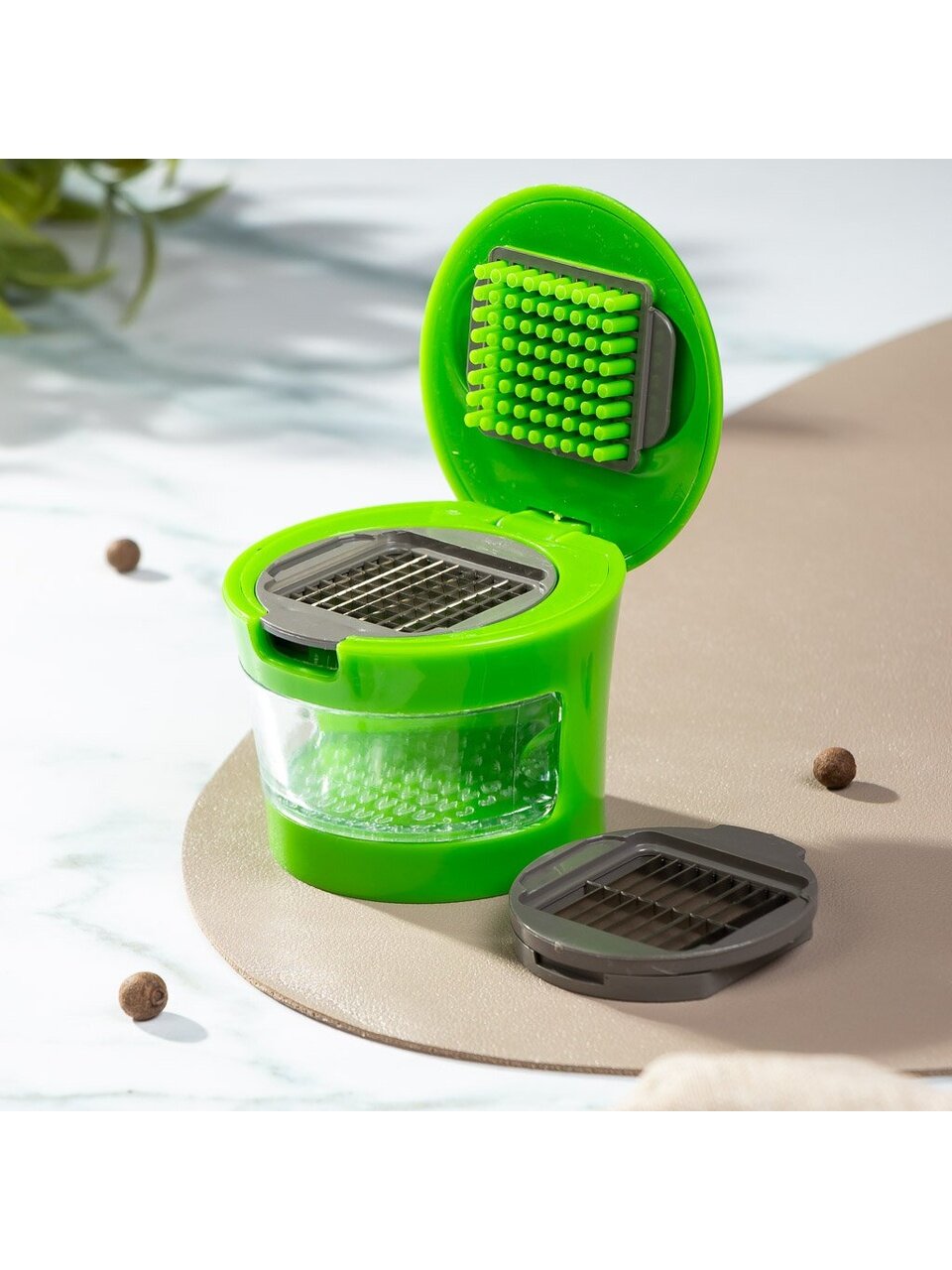 Пресс для чеснока пластик с контейнером, 7.5х6.5 см, Y4-8840 — это незаменимый помощник на кухне, который упрощает процесс готовки и сохраняет порядок. Изготовленный из прочного полимера и металла, он сочетает в себе надежность и удобство использования.