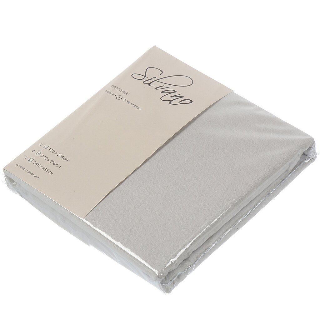Простыня 1,5-спальная Silvano из 100% хлопкового поплина, 150×214 см — долговечная, гипоаллергенная, стильный серый оттенок для комфортного сна по доступной цене.