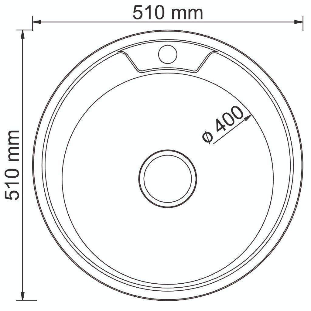 Диаметр мойки MIXLINE — 510 мм (51х51 см), она подходит для большинства стандартных кухонных столешниц и легко врезается в них.