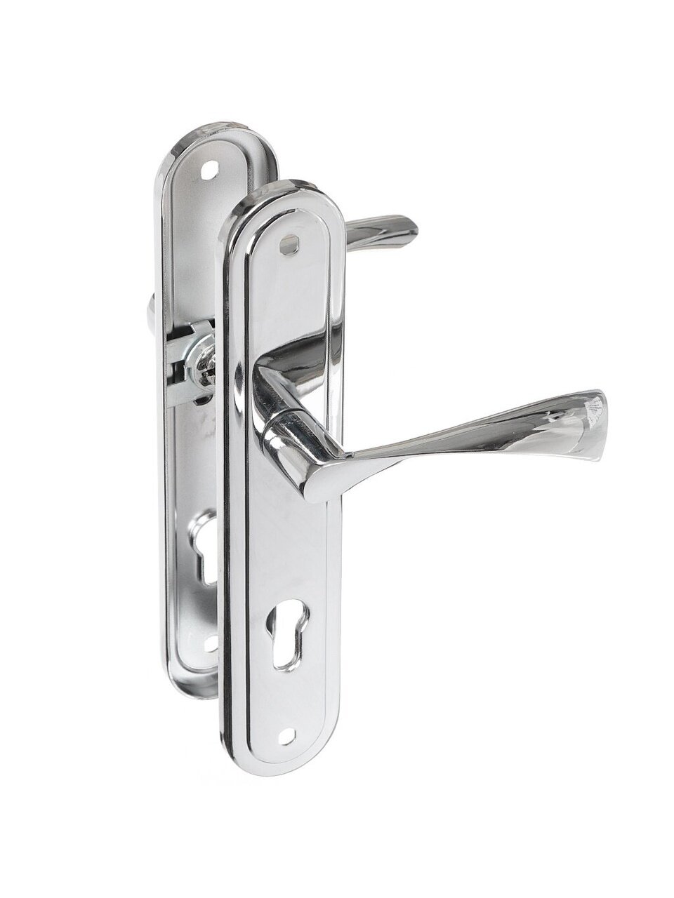 Ручка на планке Trodos, AL76/85-L CP, 204485, хром — современное решение для стильного и надежного оформления дверей в доме или на даче. Модель отлично сочетает в себе практичность, лаконичный дизайн и долговечность. Благодаря хромированному покрытию изделие гармонично впишется в любой интерьер, придавая дверям элегантный внешний вид и подчеркивая современный стиль помещения. Ручка предназначена для установки на двери с цилиндровым замком, что делает ее универсальным выбором для жилых и хозяйственных помещений. Комплект включает две ручки, что обеспечивает удобство монтажа и эксплуатации.