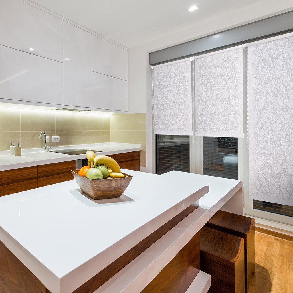 Рулонные шторы хорошо регулируют освещение комнаты и позволяют создать особый световой фон в помещении. Воздушная прослойка между стеклом и шторами защищает летом от чрезмерного нагревания помещения, а зимой – от проникновения холодного воздуха.