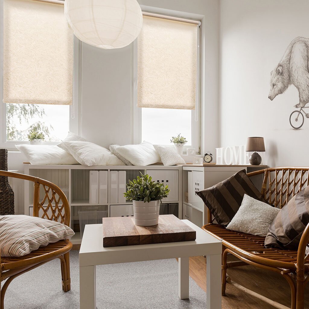 Рулонные шторы хорошо регулируют освещение комнаты и позволяют создать особый световой фон в помещении. Воздушная прослойка между стеклом и шторами защищает летом от чрезмерного нагревания помещения, а зимой – от проникновения холодного воздуха.