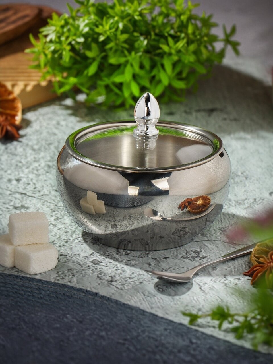 Сахарница изготовлена из качественного материала, обеспечивающего долговечность и надежность благодаря высокой прочности и устойчивости к механическим повреждениям.