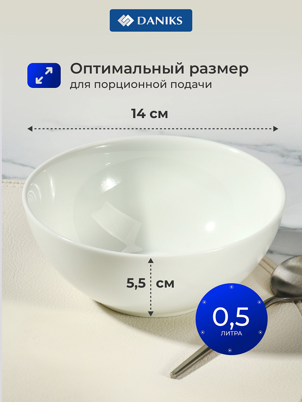- Оптимальный размер: диаметр 14 см, объём 0.5 л — удобно для порционных салатов, закусок и десертов