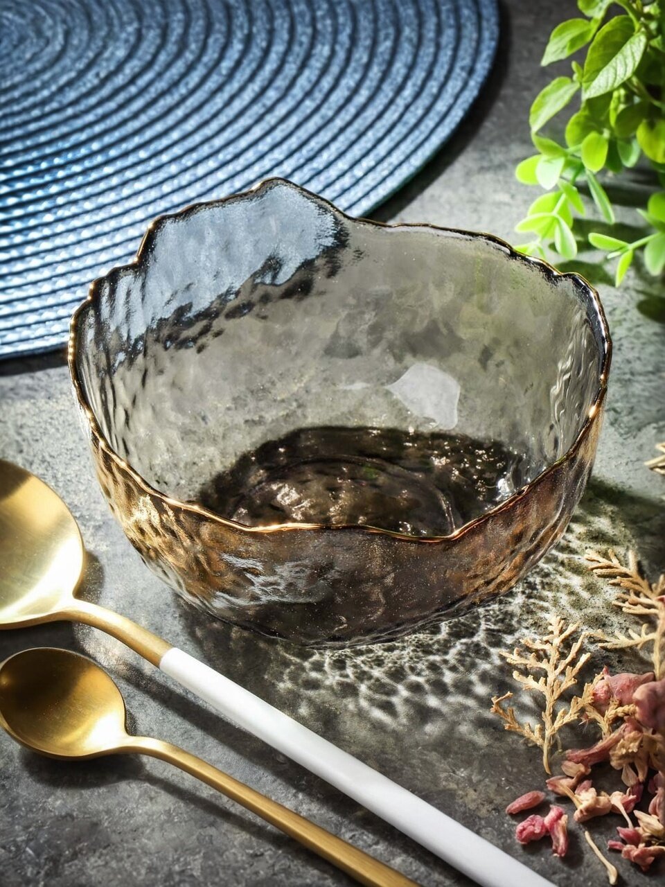Салатник из стекла 13×6 см (0,31 л, графит, золотая окантовка): стиль для сервировки, надёжность для дома и дачи, выгодно купить онлайн.