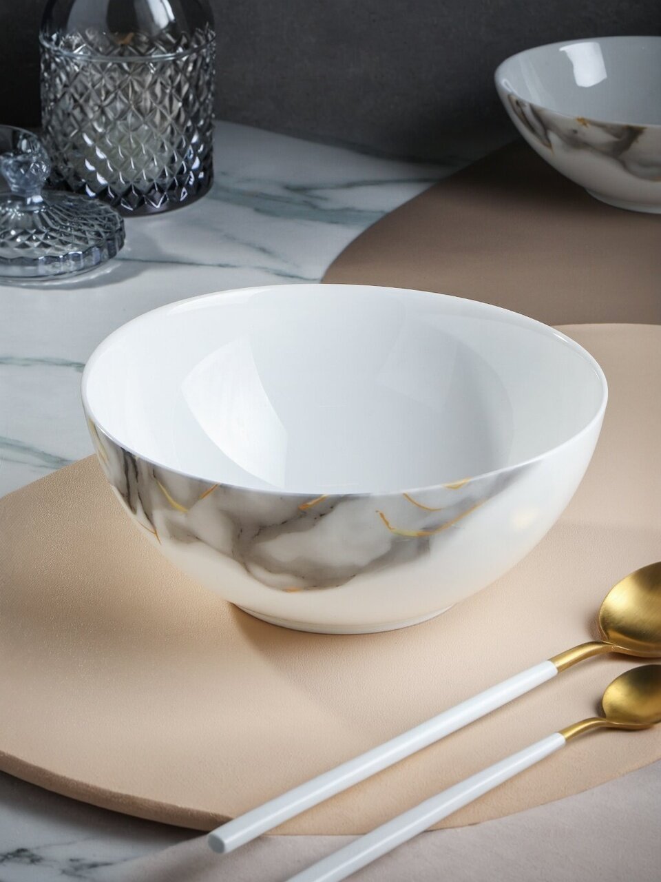 Салатник Daniks Флюид 1.5 л: стильная стеклокерамика 20×8,3 см для сервировки, подходит для СВЧ и посудомоечной машины. Решение для дома и дачи.